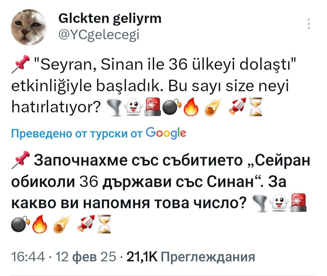 Милена, моите уважения към Х и спойлерите, ама това са изсмуквани от пръстите факти, да не кажа манипулация. Защото една бременост се променя на 36 седмици, само за да пасне на 36 държави обиколени от Синан. По тази логика бебета са износени и в 38 и 39.