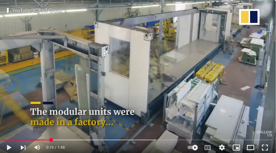 Ако въобще трябват и работници в бъдеще. Оня ден гледах в Ютюб как китайците вече вдигали 10-етажен луксозен блок за 1 ден. Естествено, 1 ден е само сглобяването, а самите модули се правят в завод - ето така изглежда той - всичко автоматизирано: