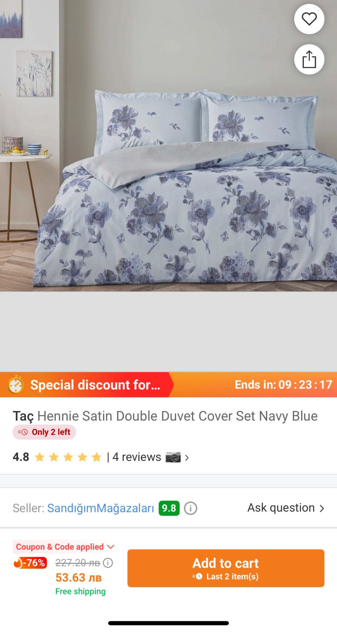 Здравейте, за първи път разглеждам сайта. Според вас дали са оригинални марковите стоки и по-точно този спален комплект ТАС? Излиза ми в кошницата на доста изгодна цена.