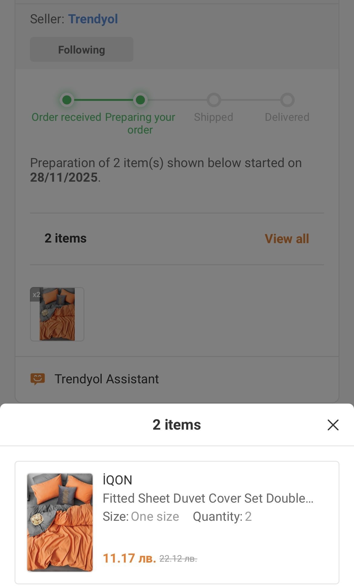 От няколко дни ми прави впечатление, че цените яко играят. Сменят се търговци на един и същи артикул. Има много ниски цени за някои неща и без купони . Назад писах за стъкления комплект, но забравих да ви покажа тези чаршафи. Имам 3 комплекта от тях, вече редовно експлоатирани и не са мръднали. В петък ми излязохо в оранжев цвят, но с търговец Трендиол. Няма кодове, няма отстъпки, цената за комплект беше 11.17лв. Естествено поръчах 2 комплекта.