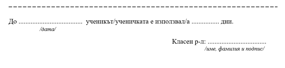 Много ми хареса как са го измислили в училището на дъщеря ми - в самото заявление най-отдолу класният попълва колко дни са използвани до момента и лесно се вижда колко остават.