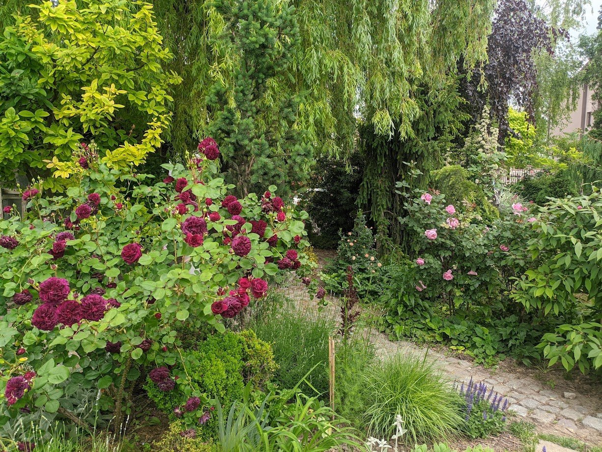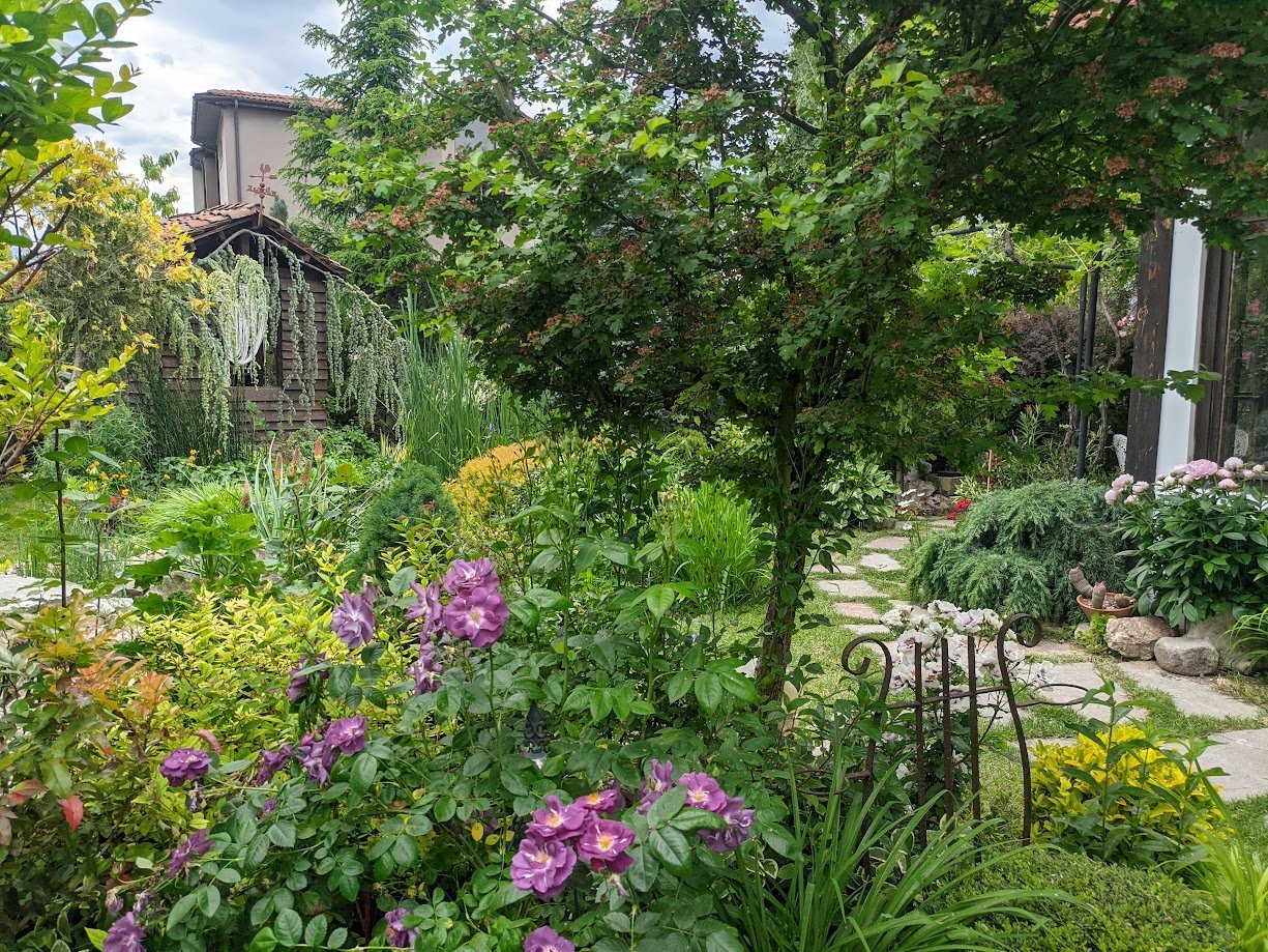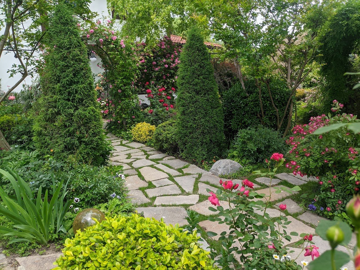 Тази пътечка я пренаредих миналия месец, защото беше доста неравна и обрасла. Тревата не е сгъстила още.