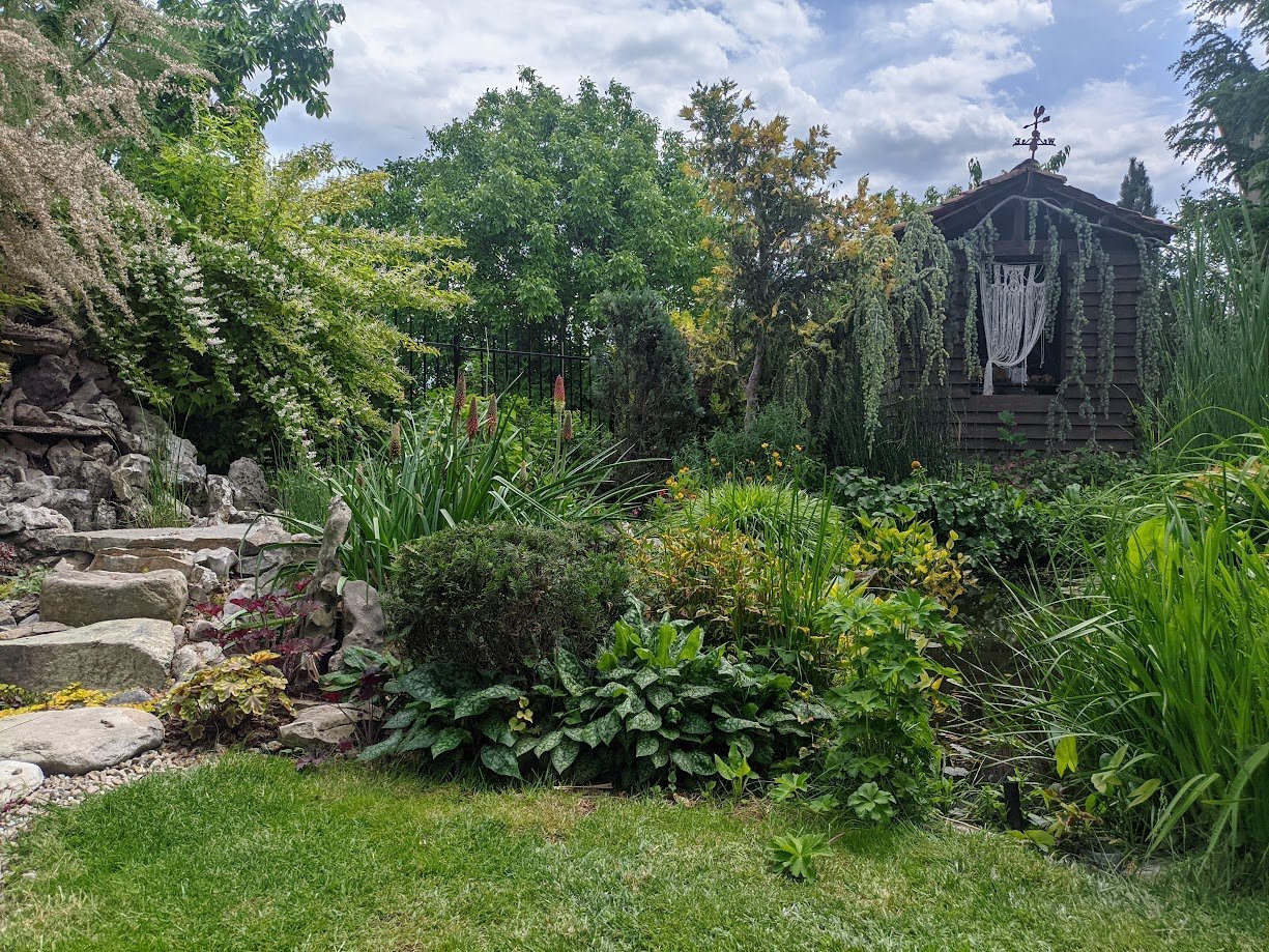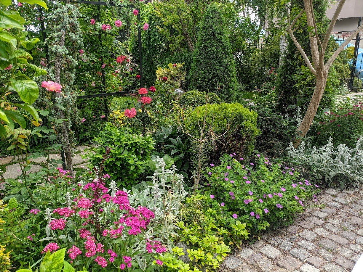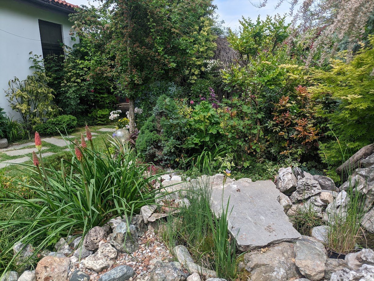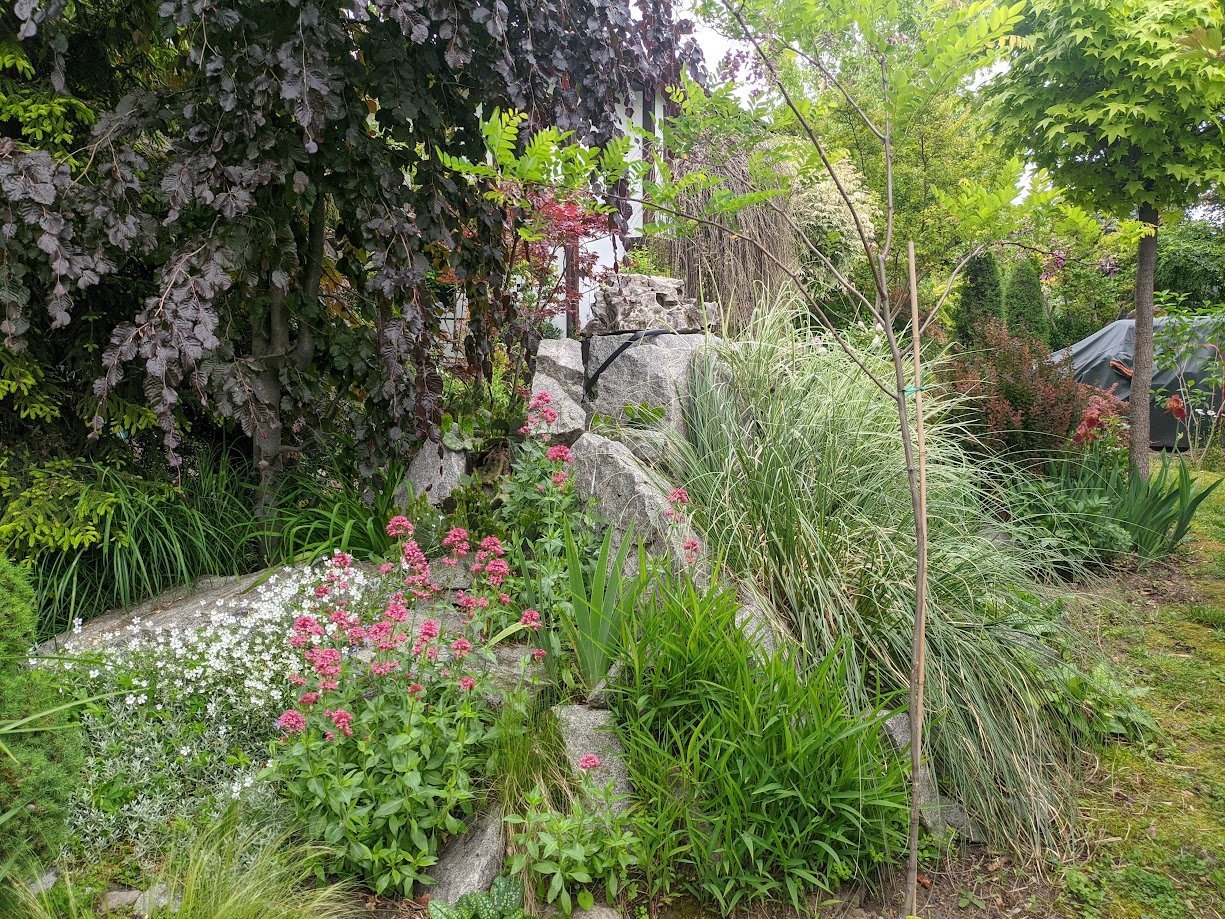 Тази пътечка я пренаредих миналия месец, защото беше доста неравна и обрасла. Тревата не е сгъстила още.