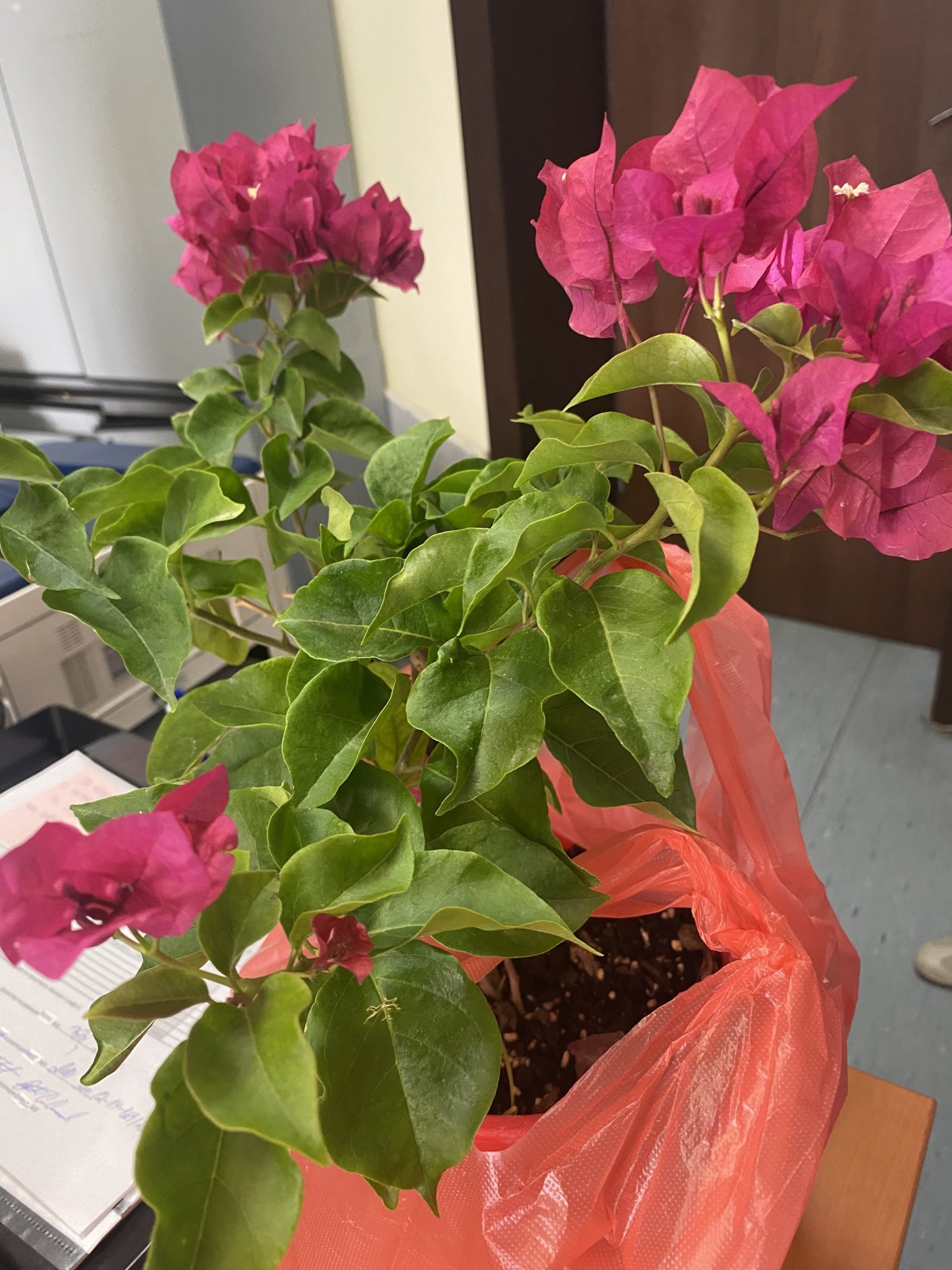 Бугенвилия е цветето. Не се отглежда трудно. Поливаш обилно лятото. Зимува на закрито.