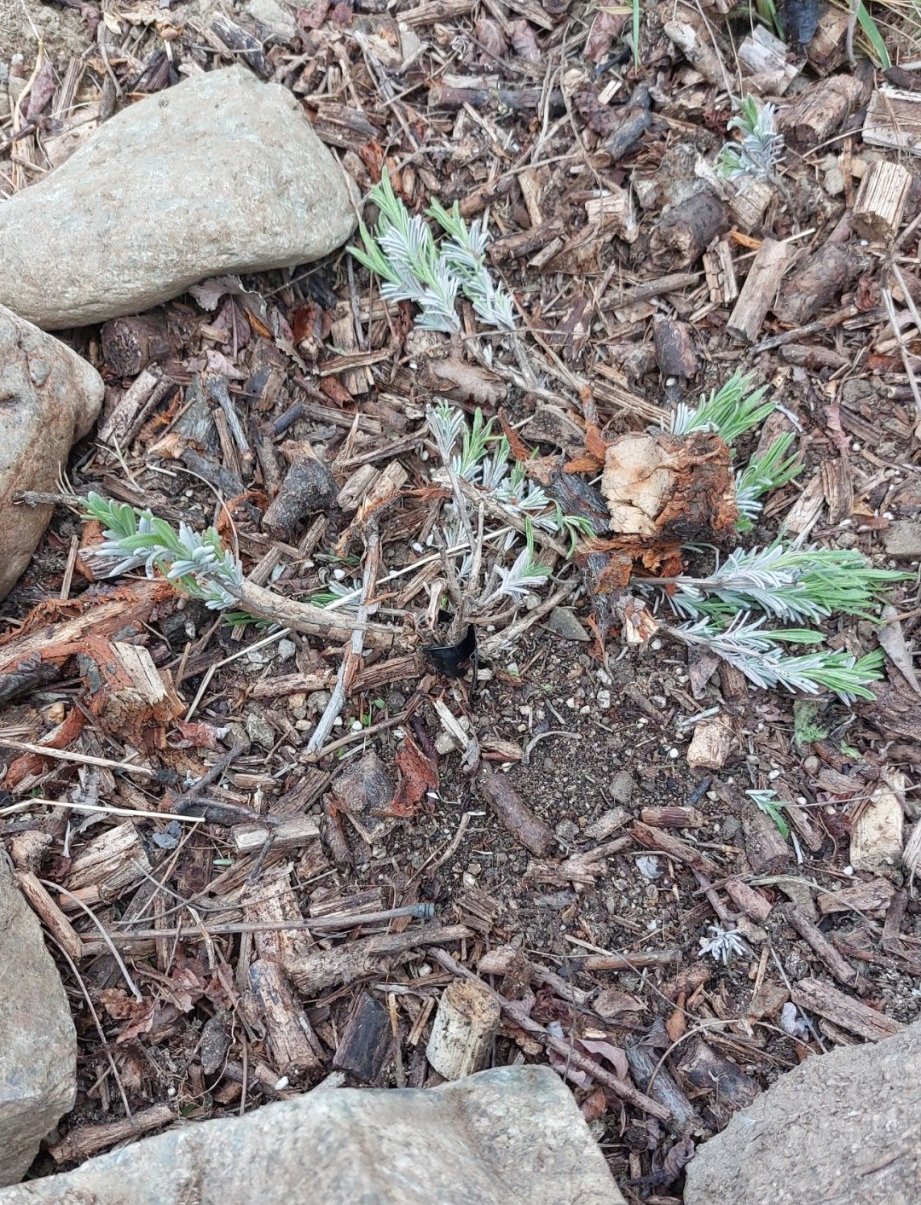 Тя не изядета, а премазани, клонките са натошени и разхвърляни, мулчът от клонки също е разпилян, мн по-едро от охлюв е това... И ако нещо я ядеше, защо би се ограничило само де нея, те са 6в редичка, тя е втора, даже не е крайна... Не е на обичайна пътека, поне не и на котките... Освен някой таралеж или костенурка да минава, но пък камъните не трябваше ли да го карат да заобикаля... 🤷‍♀️ 🤷‍♀️🤷‍♀️