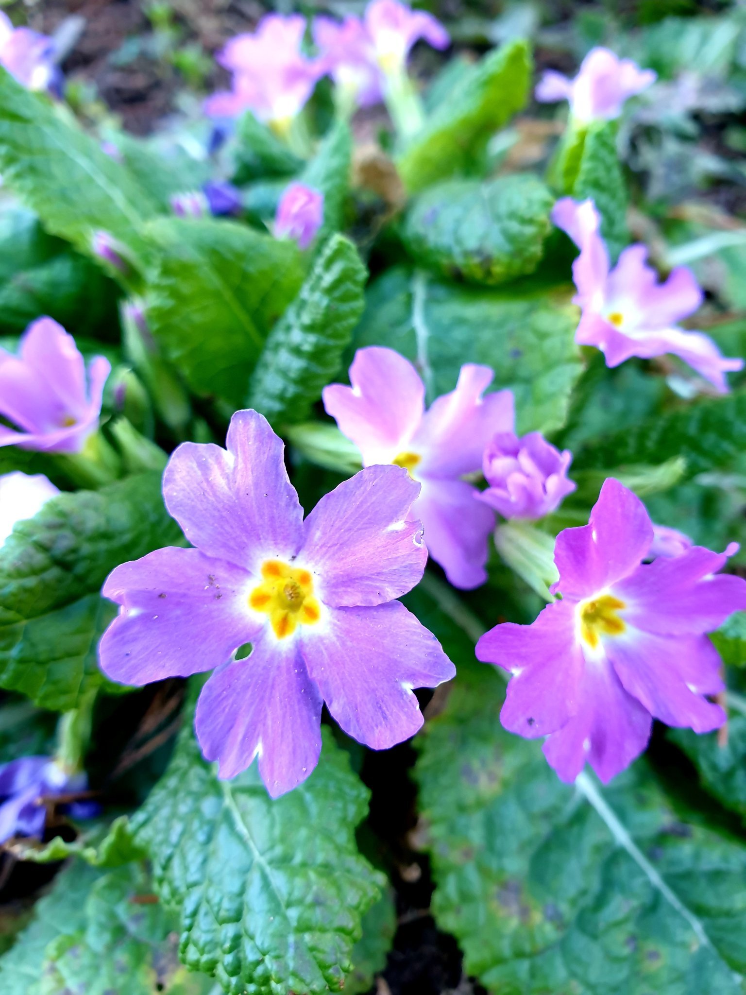 тези пред кафето на дома на учения са всякакви цветове - розови, лилави, жълти... бледички в сравнение с купешките, но толкова много, че сякаш няма трева около тях.