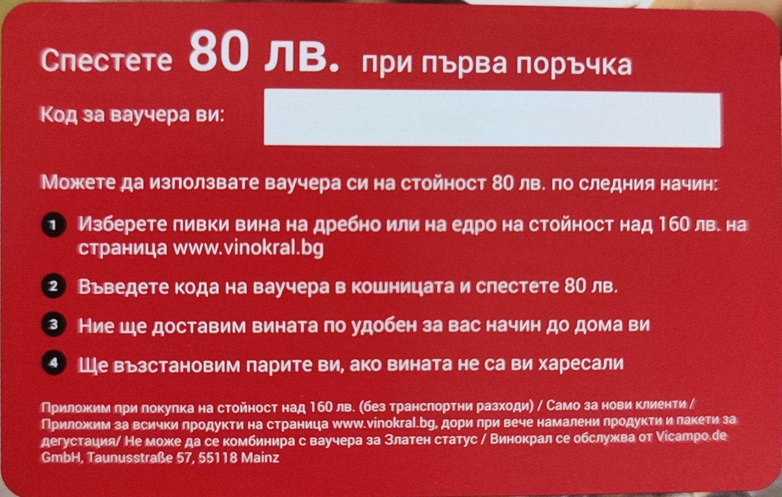 Ако някой ще поръчва повечко вино, над 160лв., мога да помогна с код на лично, ето условията: