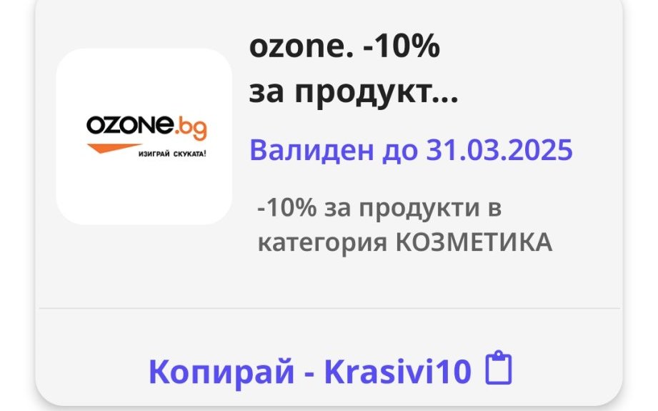 Някой случайно да има код за Ozone (oznyet10 не хваща на продукта, за който ми трябва)?
