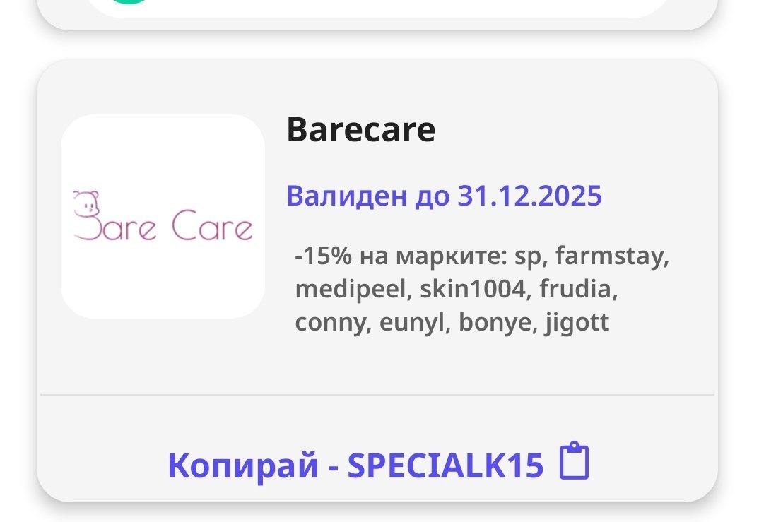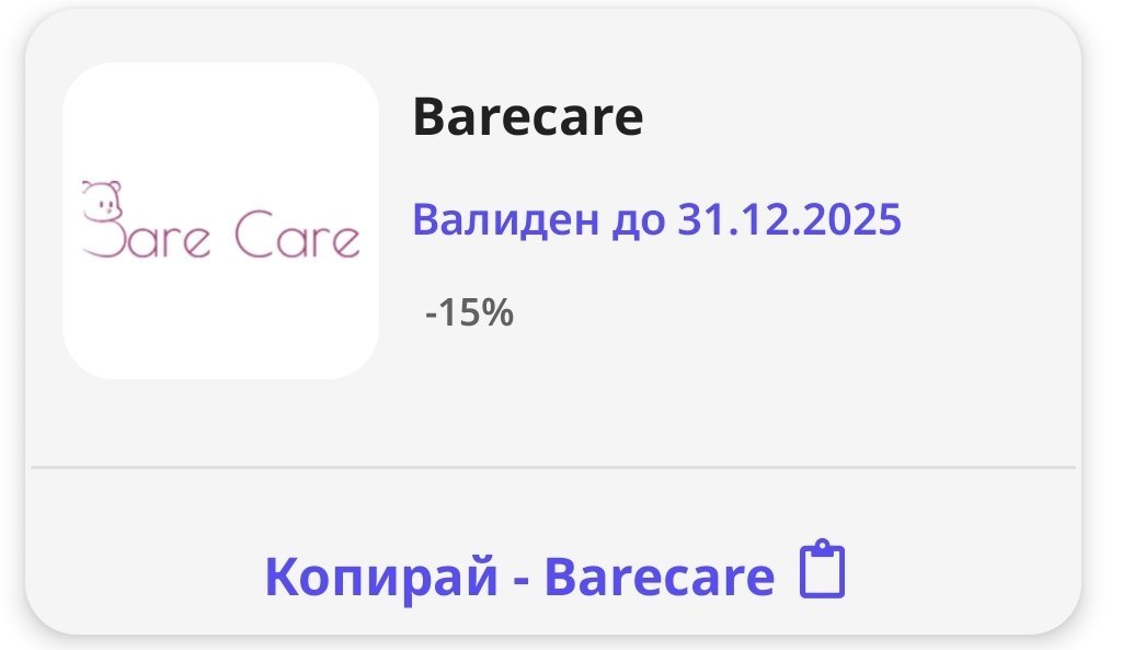 Здравейте, мамчета, търся код за bearcare, ако някой има, за повече отстъпка от този в сайта, който е за 10%🙂