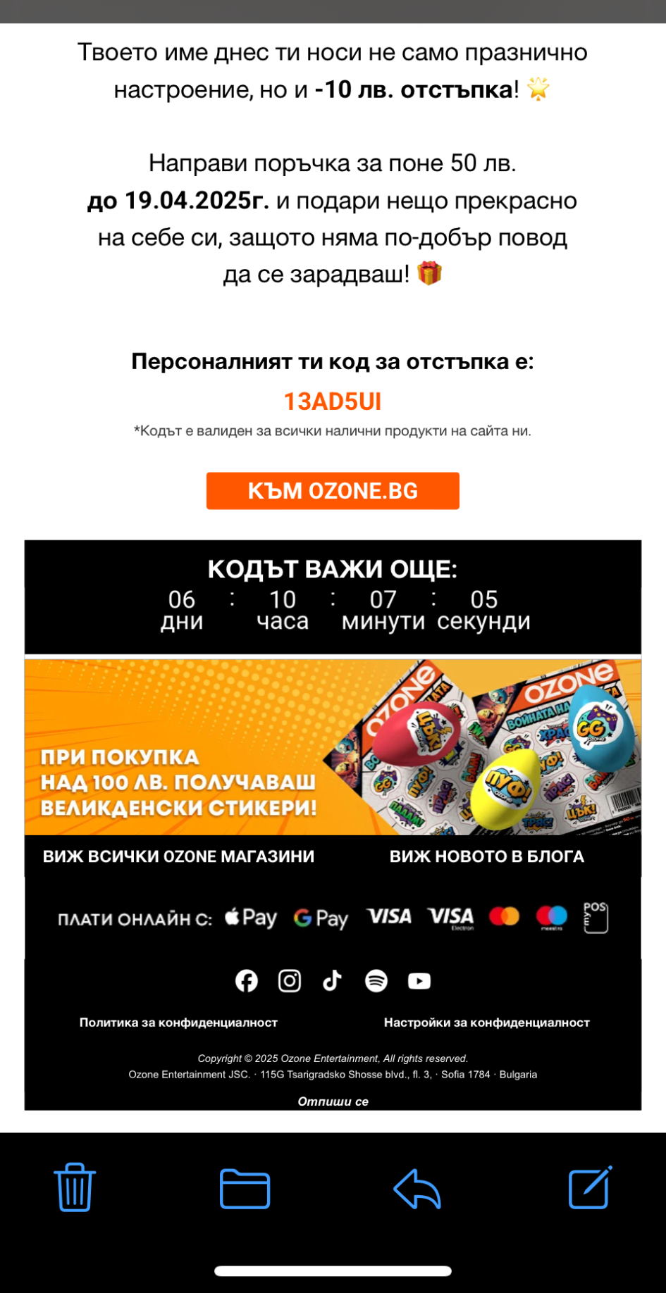 Може ли ако някой няма да си ползва кода от имен ден в Озон да го сподели на лично🤗