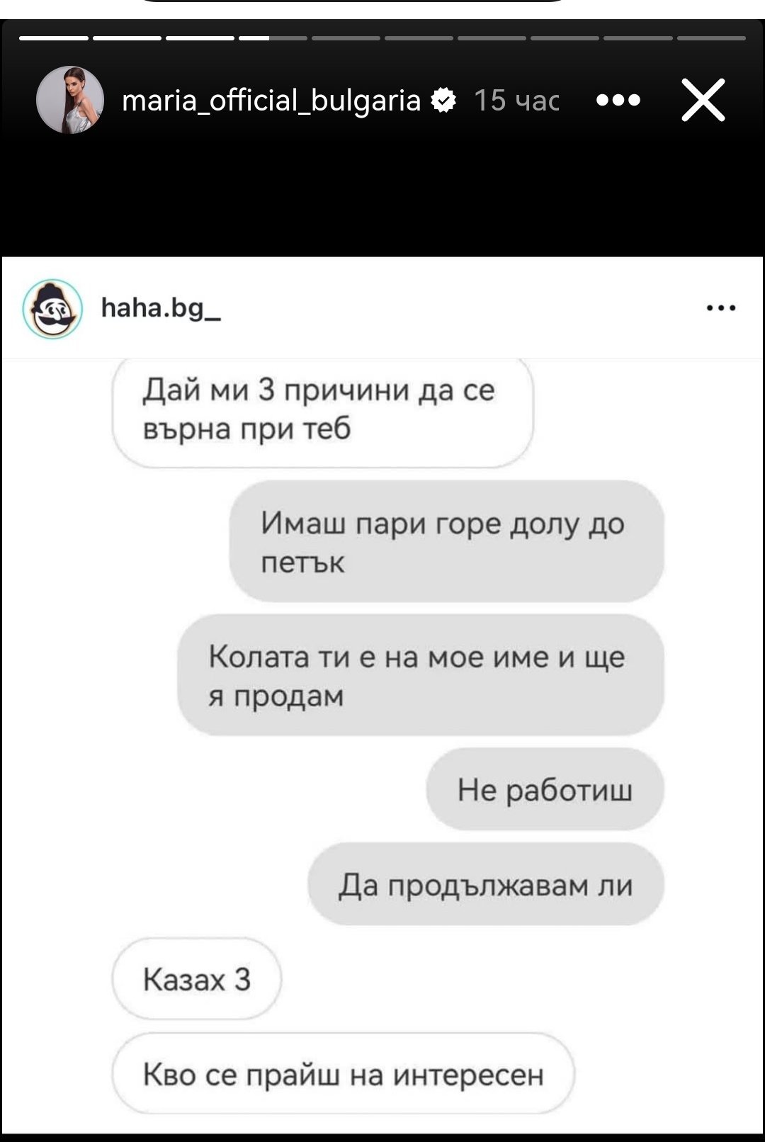 Историята на Мария, мисля че визира Светлана, демек се е събрала с Хррис 😀