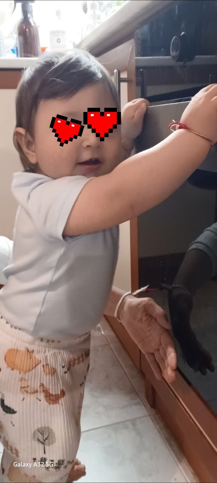 , на чекмеджето под нея махнах дръжката, защото се опитва да се качва на него. Честно казано я оставих да пада и да се удря, защото е кошмарно и докато е в настроение и си играе сама да сме залепени една за друга, обезопасих където можах, понаучи се да се пази, сега като сяда от изправено положение прави шпагата и така не си удря дупето. Всеки ден се придобиват нови умения, нямам търпение да дойде да ме гушне и целуне, но има време до тогава