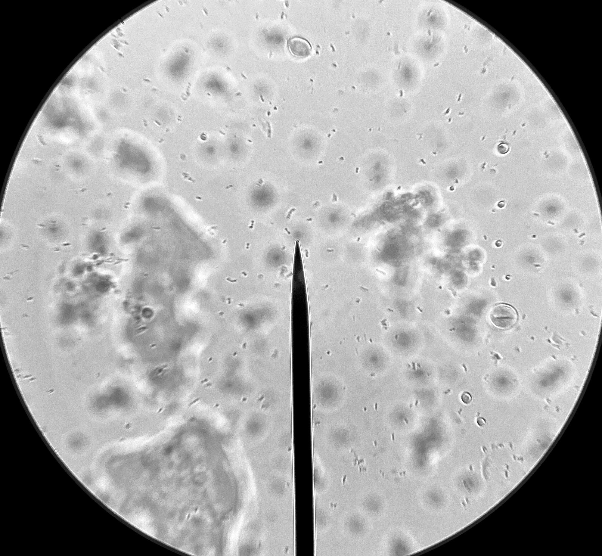 ВТОРА партида, заквасена от готово мляко, не от капсула... имам отново разделяне, но е малко, млякото изглежда добре, не съм позволил замърсяване със стрептококи. Използвал съм BioGaia Protectis... теста под микроскоп много ми харесва. Имам чудесна концентрация на сдвоени дебели пръчици, което си е чисто ройтери.