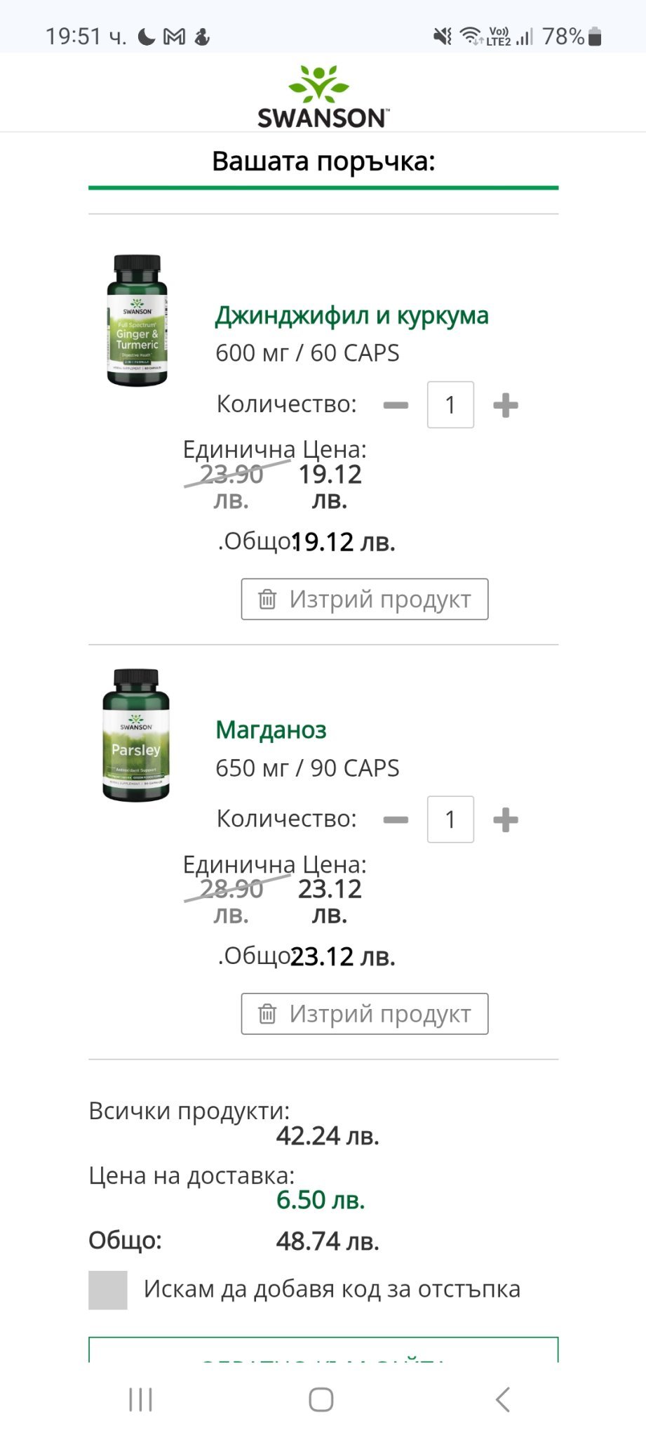 Ще правя поръчка от свенсон на магданоз и куркума с джинджифил. Вчера ги намалили, та няма да имам безплатна доставка. 😁  Сложих ги вчера в количката и днес, изненада.