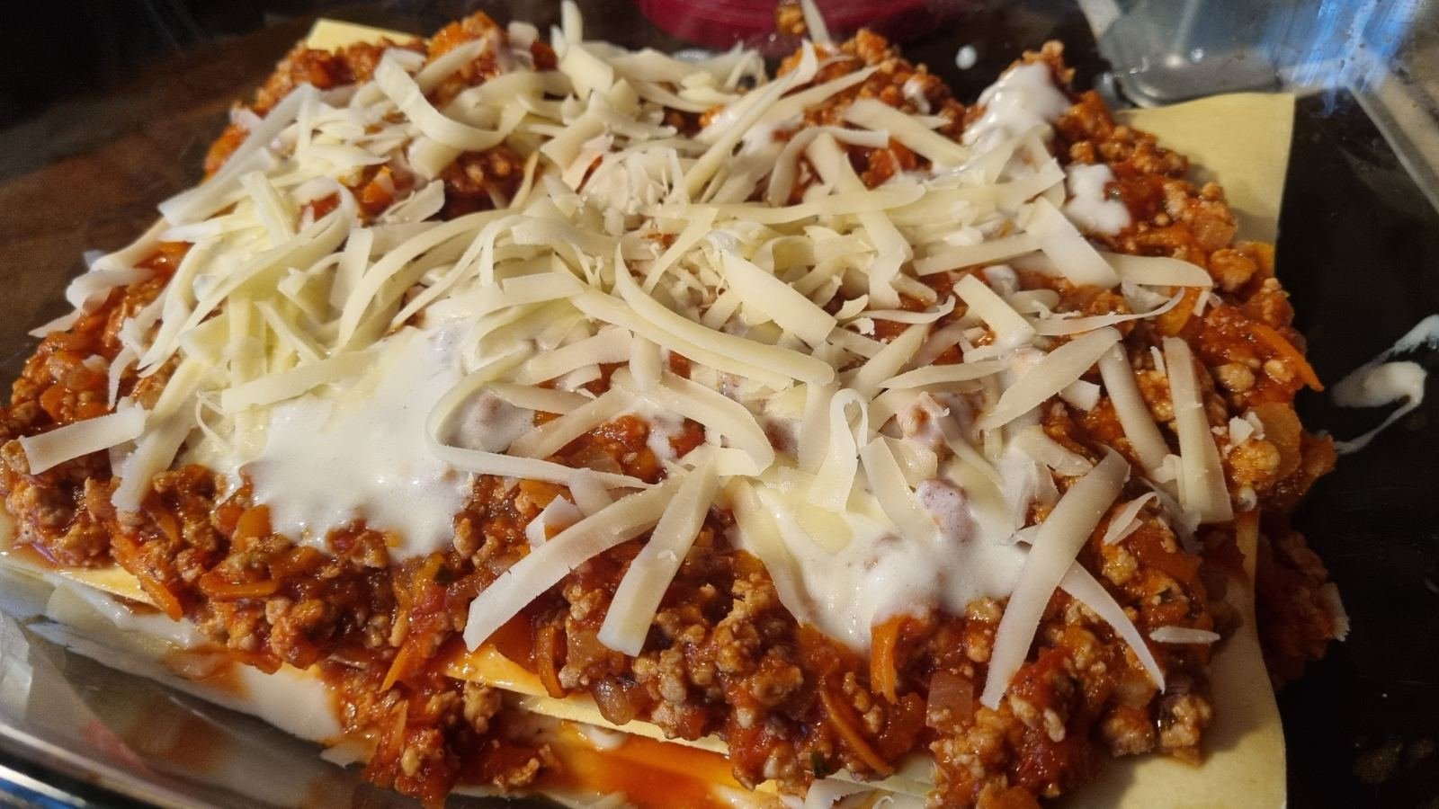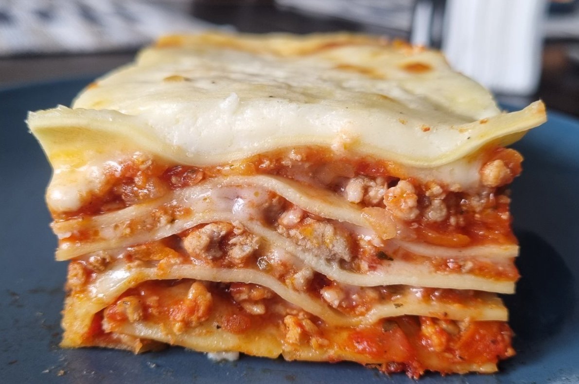 Лазаня от вчера. Стана много вкусна и сочна. Изобщо не пестих от материала Satisfied