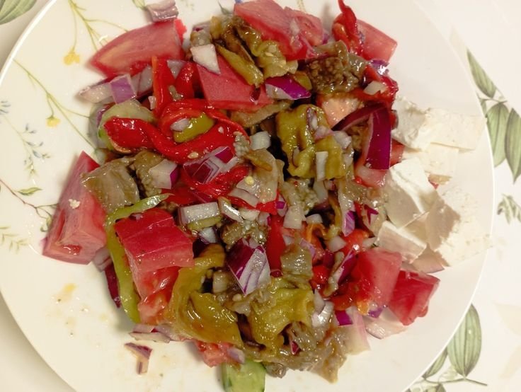Салата домати, печени чушки и патладжан
