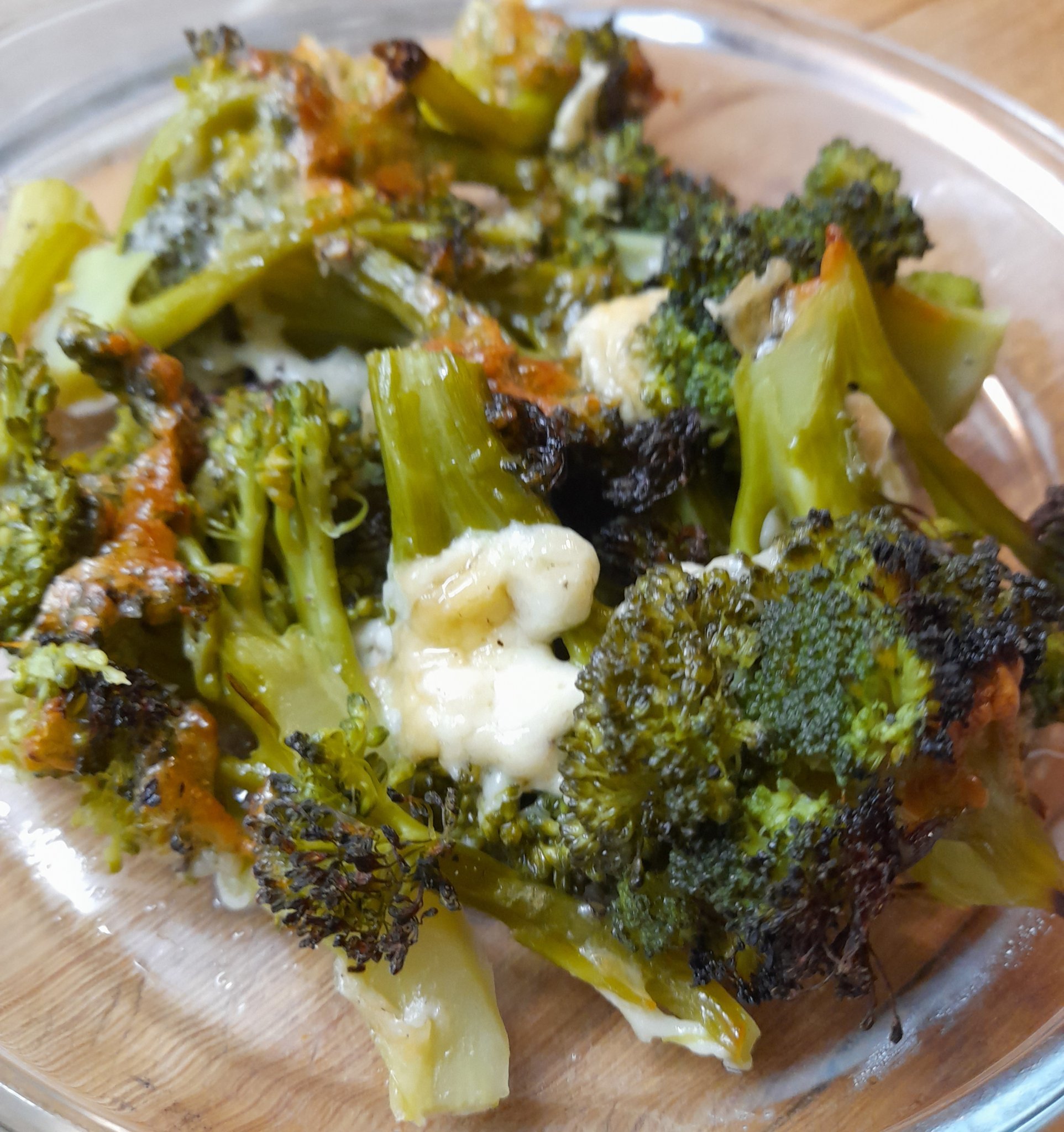 Сварявам броколито на пара,като внимавам да не се развари.Слагам в тавичка,поръсвам с черен пипер и сол, добавям кашкавал и масло и запичам във фурната. Много бърза и вкусна рецепта.