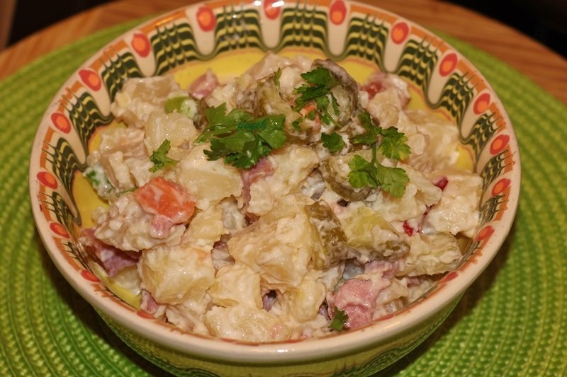 Какви са основните съставки на японската картофена салата, както е описано във форума?