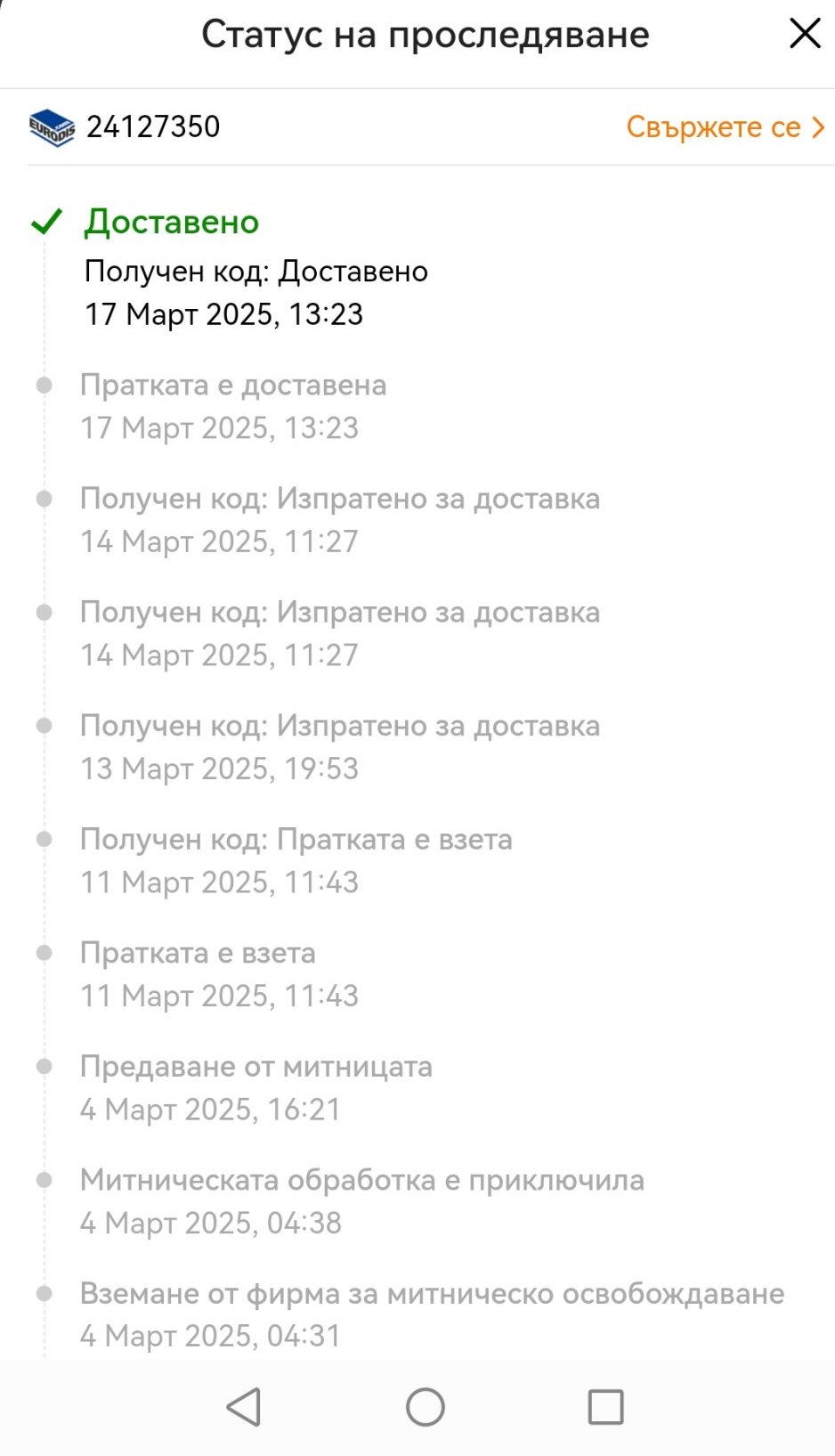 Когато излезе от централен офис. В parcelapp това се вижда.