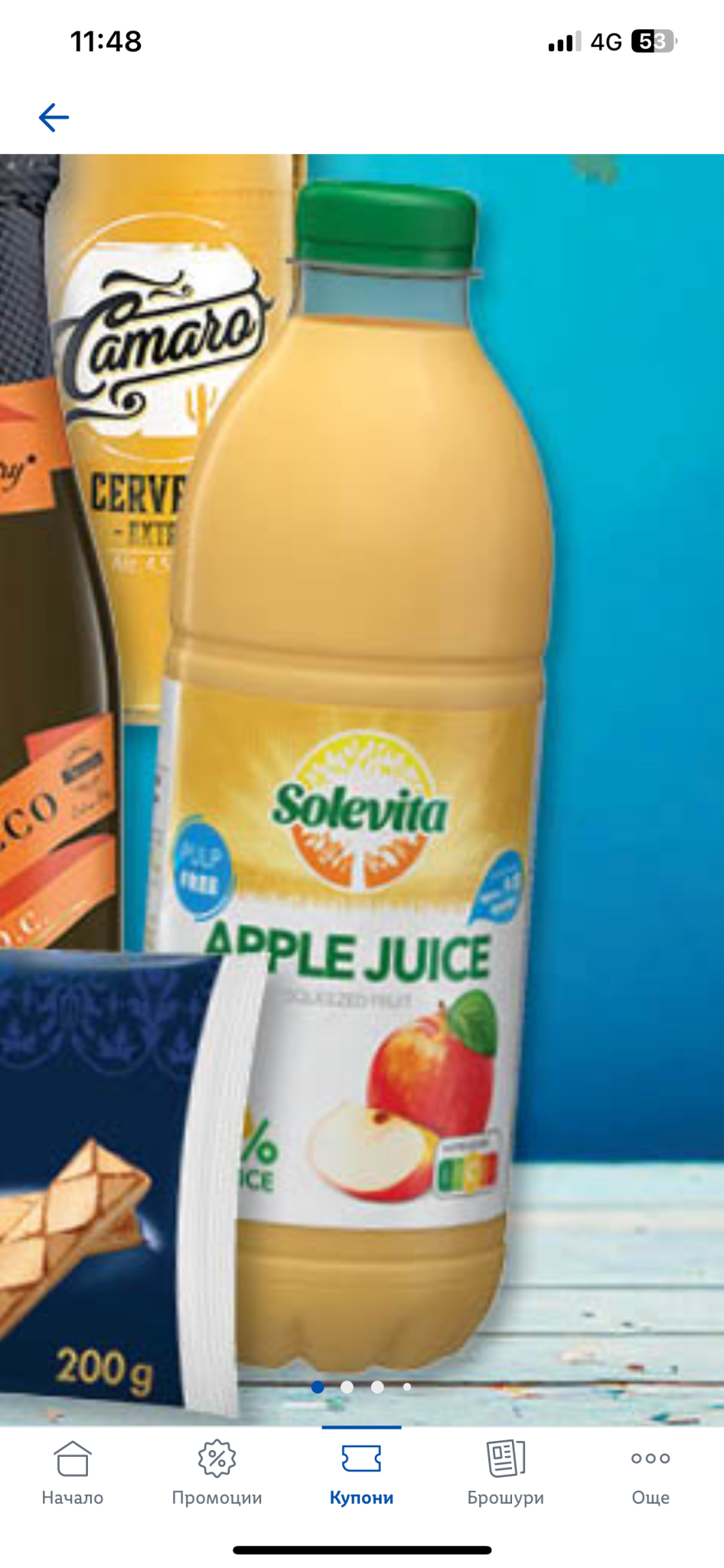 Питах служител снощи на Халите. Показа ми соковете и каза че от ябълка имат само един вид. Е добре ама на купона кода на артикула е друг и сока изглежда различно от този на снимката.
