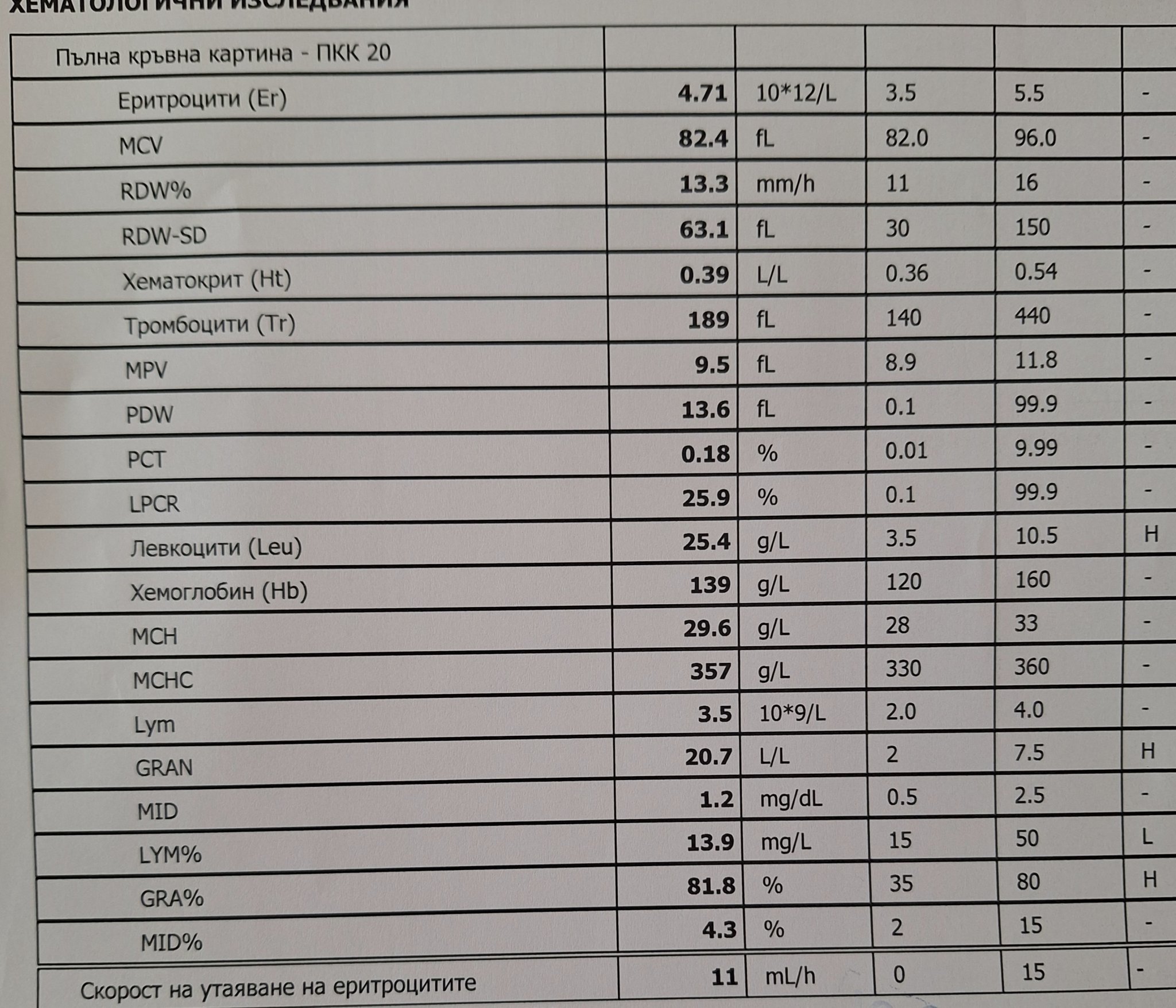 При всяка, абсолютна всяка инфекция изследванията и са подобни. Високи левкоцити и гранолуцити, ниски лимфоцити.