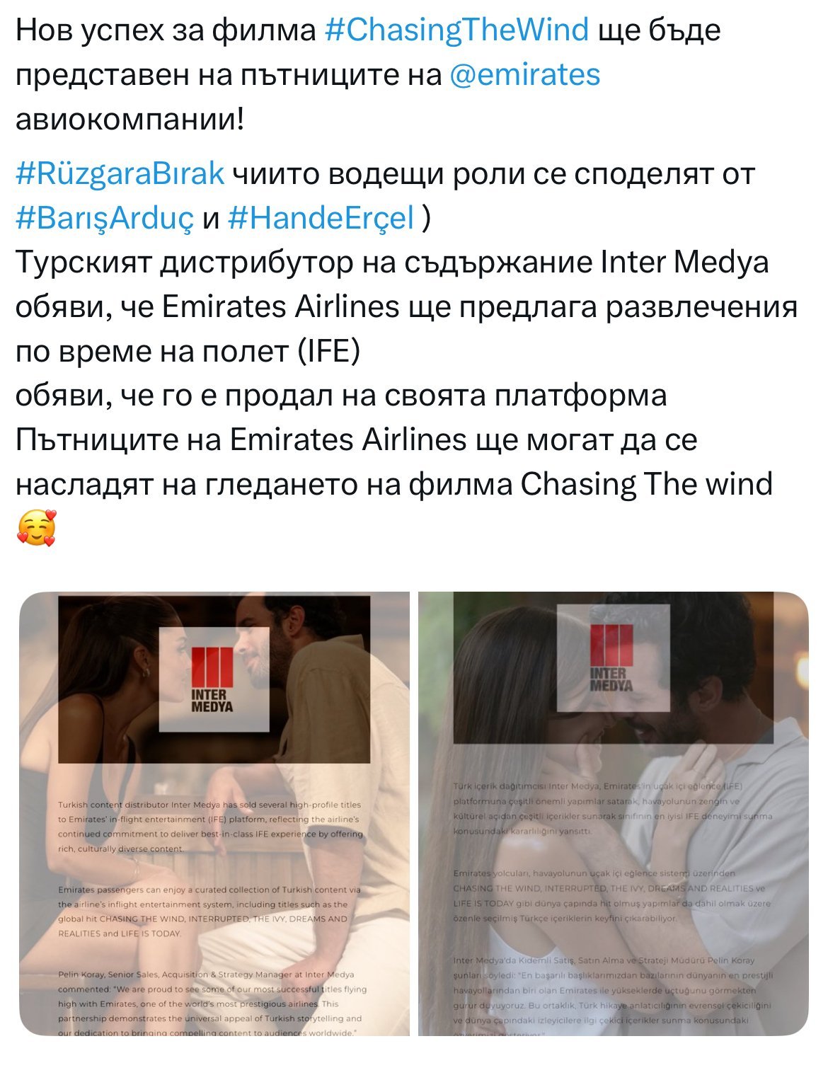 Emirates са купили правата на Остави го на вятъра. Вече ще може да се гледа от техните пасажери.