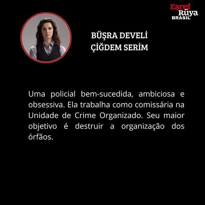 SERDAR GUNSUR:Началникът на Çiğdem е студен и твърд полицай. Като шеф на полицията в новоименуваното звено за борба с организираната престъпност той е твърдо решен да разкрие случая "Сираците". Ожесточен съперник, който ще предизвика Ешреф.