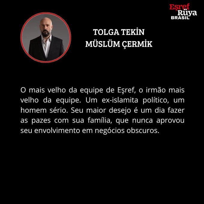MÜSLÜM ÇERMIK:Най-старият в отбора на Ешреф, най-големият брат в отбора. Бивш политически ислямист, сериозен човек. Най-голямото му желание е един ден да се помири със семейството си, което никога не е одобрявало участието му в сенчестия бизнес.