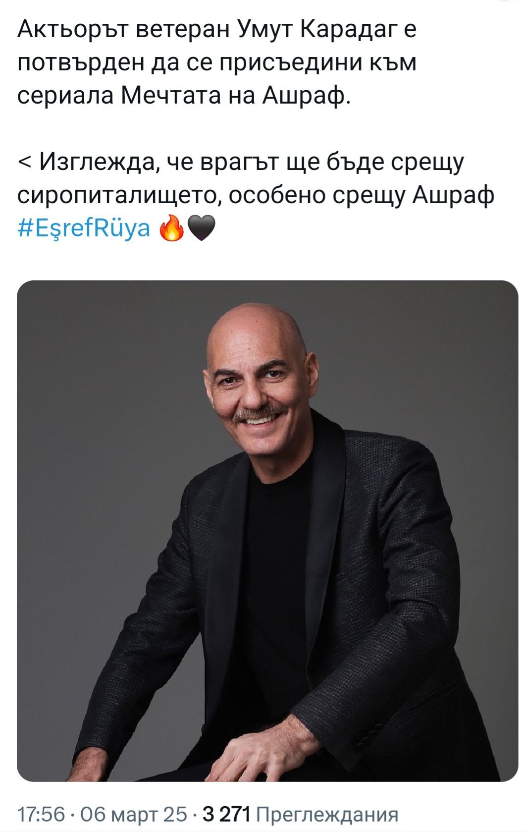 Нов актьор се присъединява към екипа на "Eşref Rüya"