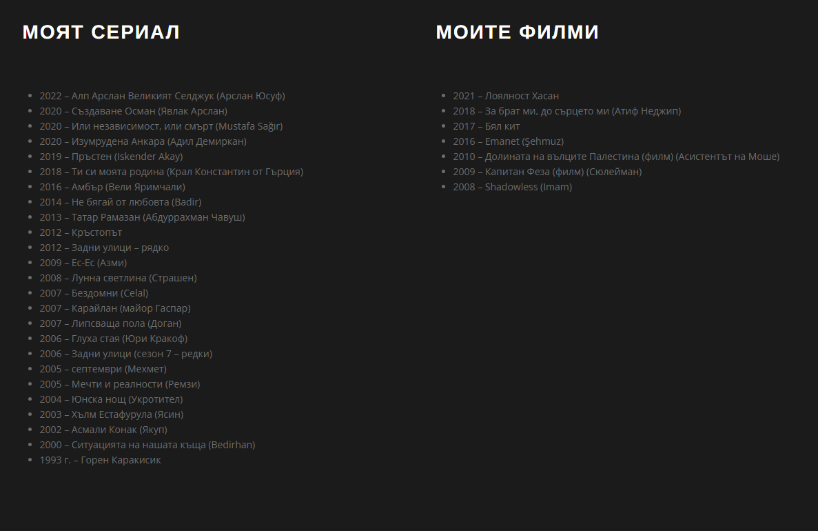 Леле, този новия актьор каква богата артистична кариера има. Не съм го гледала, но филмографията му е дълга като на холивудските атьори.