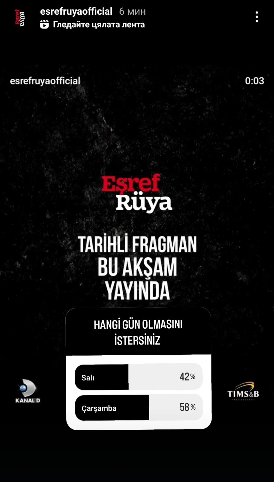 От канала на "Eşref Rüya" питат според нас в кой ден искаме да се излъчва