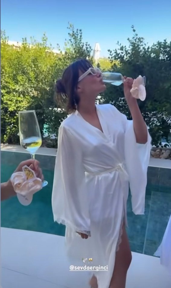 ❥ Актрисата Биран Дамла Йълмаз хвана сватбения букет на сватбата на Севда Ергинджи, която се състоя снощи на остров Хиос.