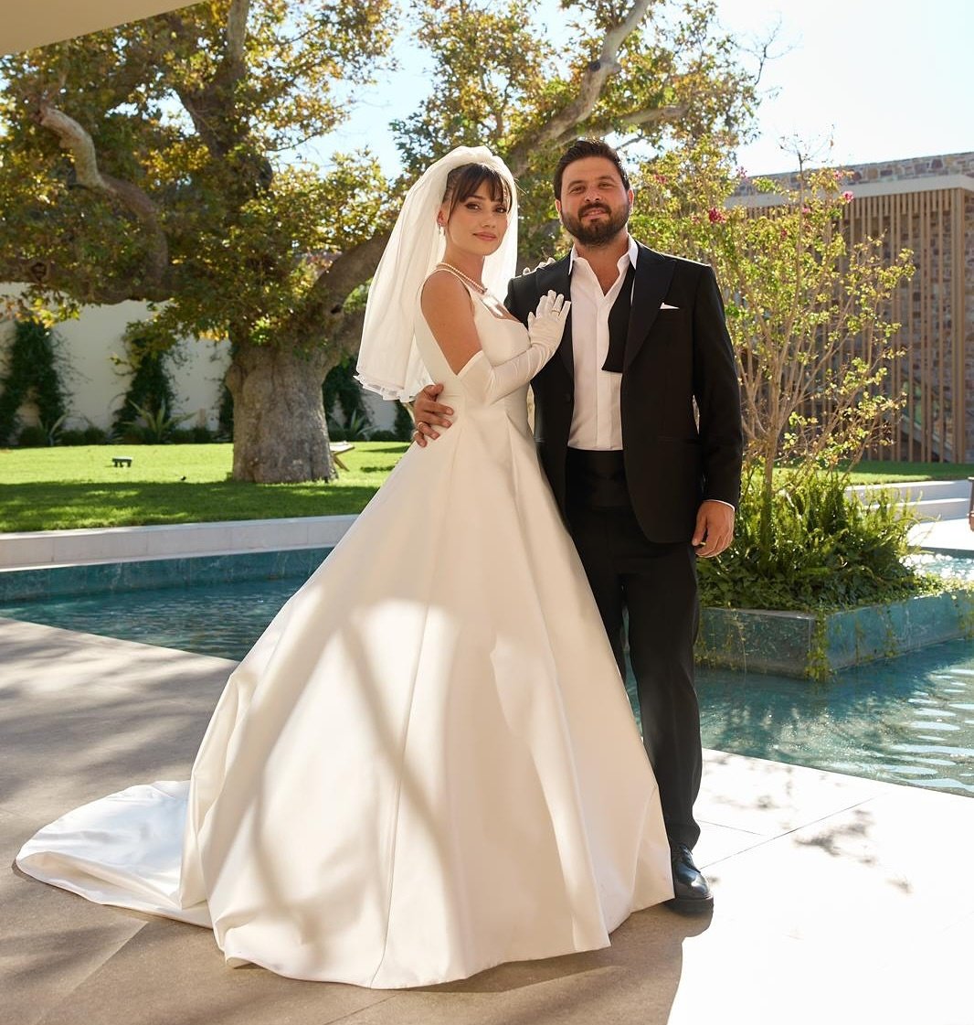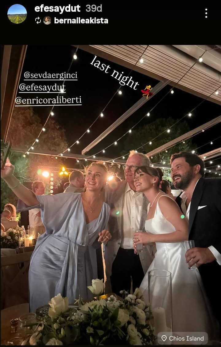 ✅Известната актриса Севда Ергинджи и архитектът Ефе Сайдут,които  се срещат от 1 год., се ожениха на остров Хиос. Миналата седмица двойката се ожени на церемония в тесен семеен кръг в Измир. Вчера те се забавляваха със семейството и приятелите си, а преди церемонията позираха пред камерата в сватбените си облекла  в приказната атмосфера на Хиос.