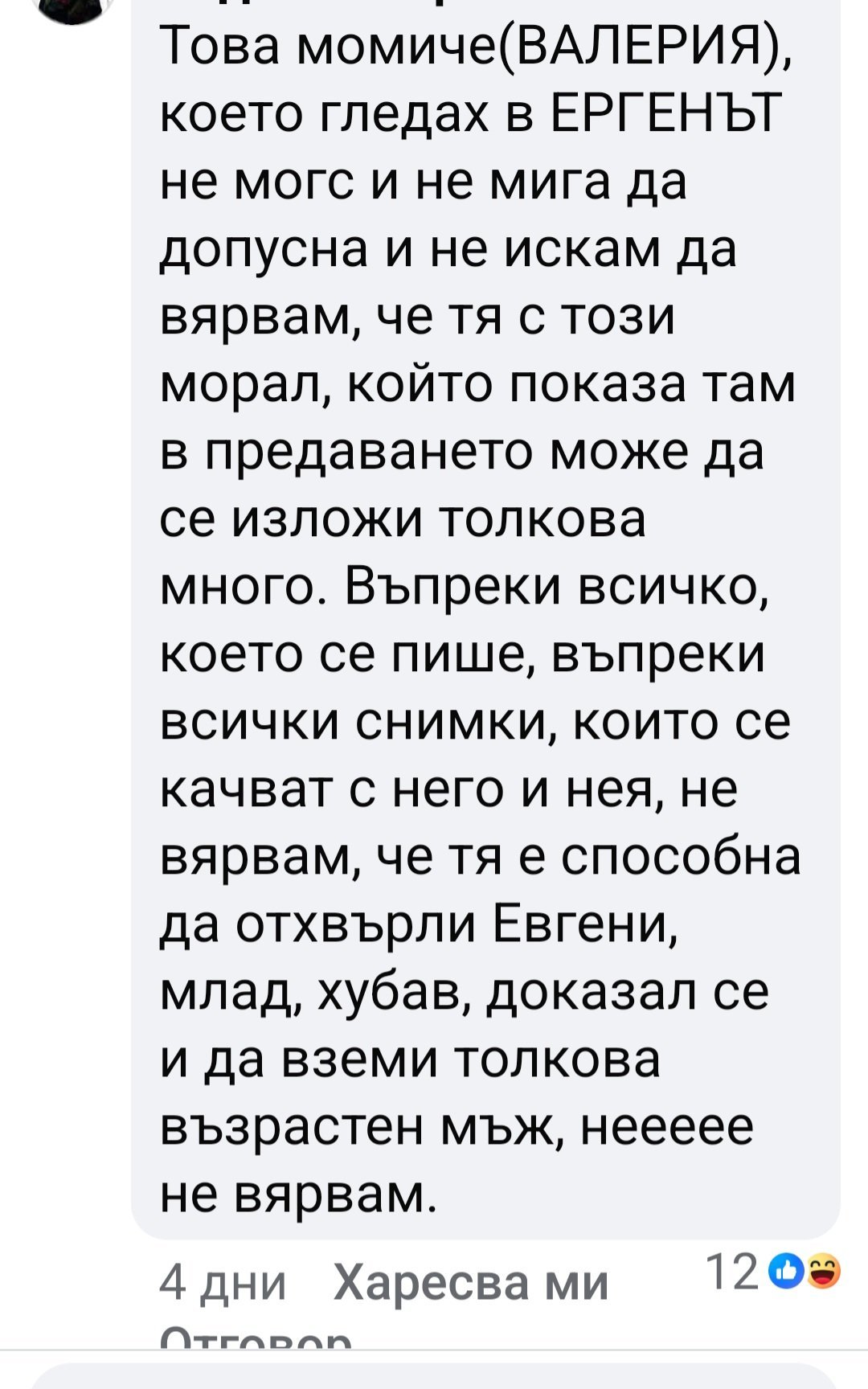 Даниелчето кого заблуждава с тези изявления как не допускала мъже... повтори го 10 пъти, поне един път да прозвучи по-достоверно.