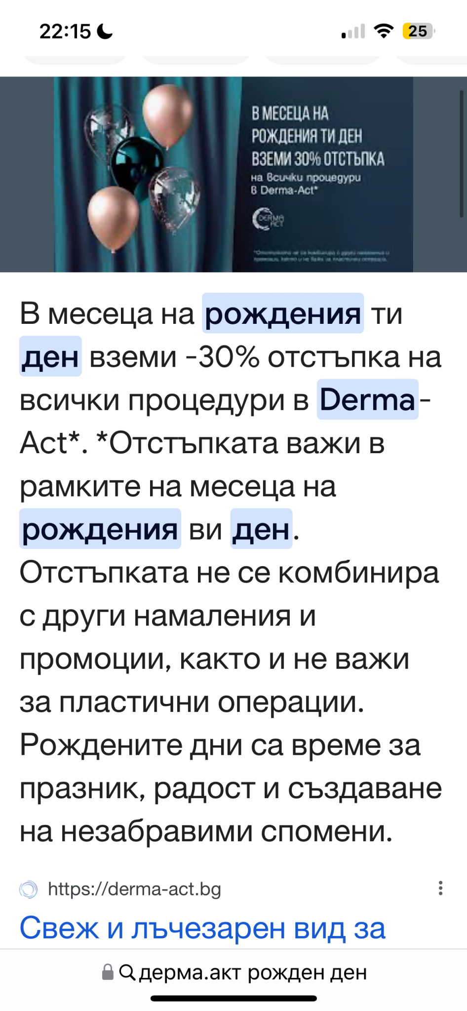 Момичета, в месеца на рождения ми ден през целият месец ли ползвам отстъпка в Дерма акт? И колко процента беше?