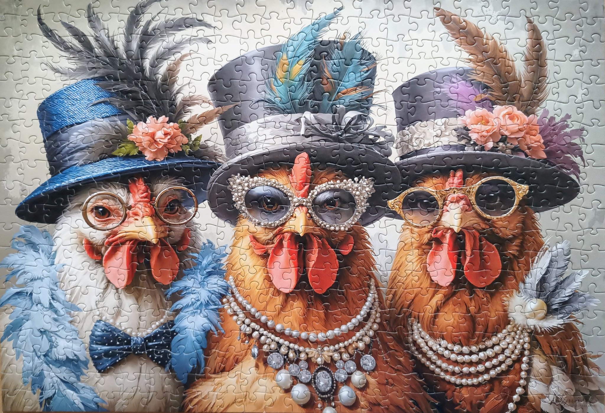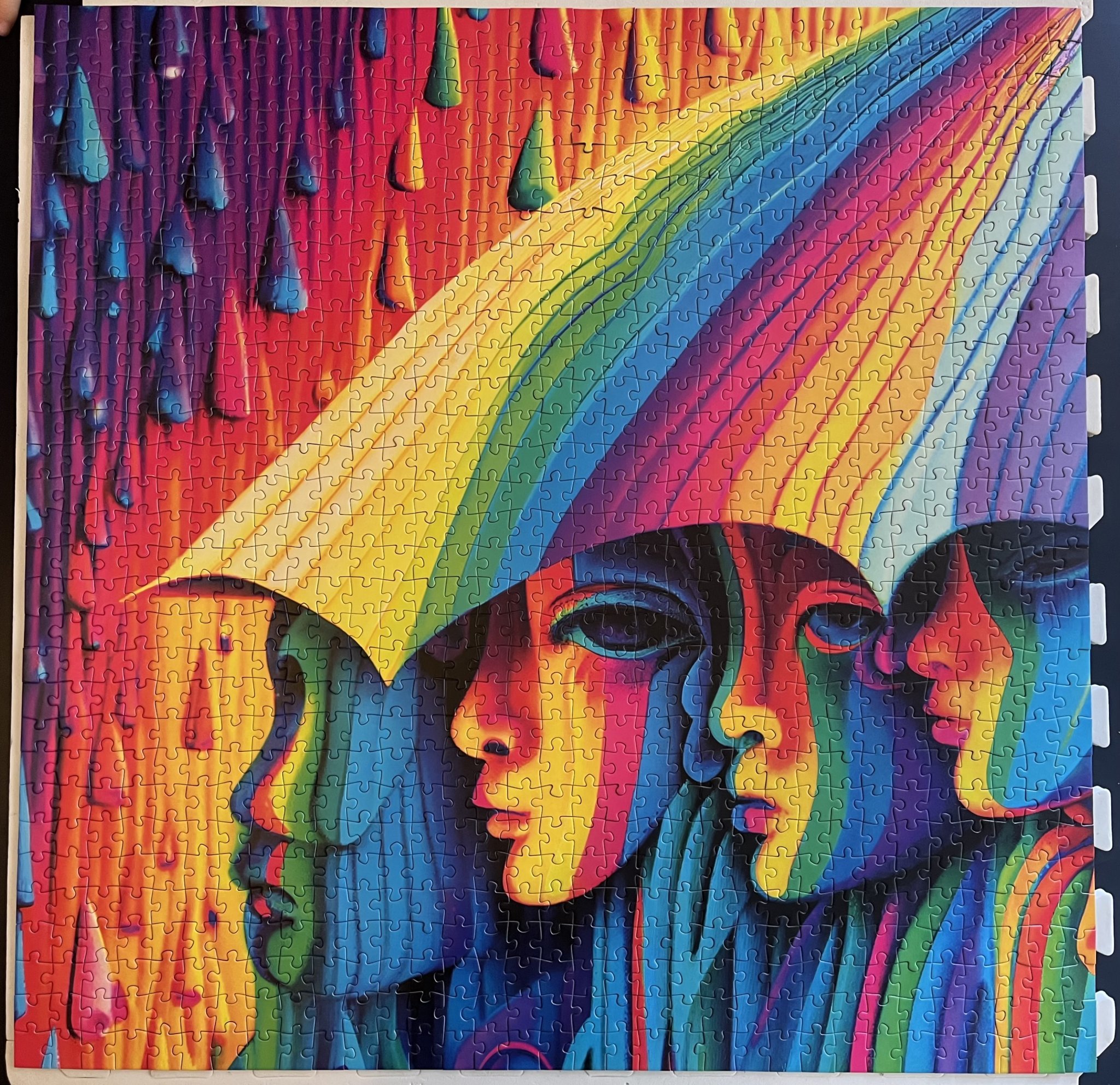 3 фабрични липси. Няма никакъв шанс парченцата да са изгубени вкъщи. За сефте ми се случва да попадна на нов пъзел с мигрирали към по- интересни дестинации парчета. Та, така. Иначе изключително хлабава сглобка, тънки  парчета, гланц, много излишна хартия по ушетата и дупките, в които влизат самите уши. Прах- нормално, но то за мен Равенса са първенци в това отношение, макар да нямам опит с всички марки пъзели на пазара. Въпреки негативите ( Арт пъзел) харесах този паун и го наредих. ( половинката отсъства за няколко дни, та си го редих по моя си хаотичен начин😄)На живо е страхотно изображението особено като го освети слънцето и се губя в цветове, багри и нюанси. Хипнотизиращ. 🙂