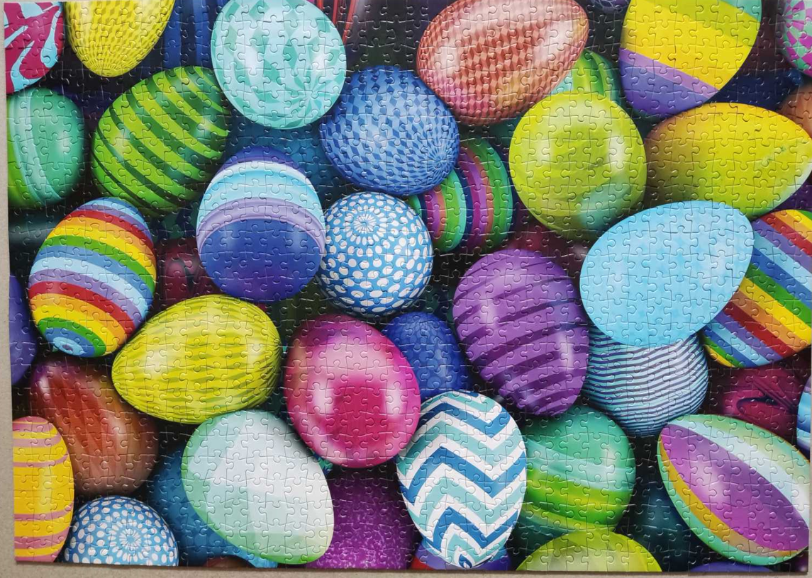 Мина ми огорчението като се зарових в купчината и започнах нещо да редя. Всъщност мисля, че са две повтарящи се долни половини с някои липси. Интересен казус е, защото са малко по- различни шарките на двете половини и трябва човек да открие, коя част от коя точно половина е. Пъзелът, че е брак- няма спор. Като се наиграем вероятно ще го засилим-ясно къде. Макар че, мъжът ми се е амбицирал да нареди колкото може и да го качва в " пинтерест" или да пише на Трефъл да го обезвъзмездявали с F16- ка. 😄
