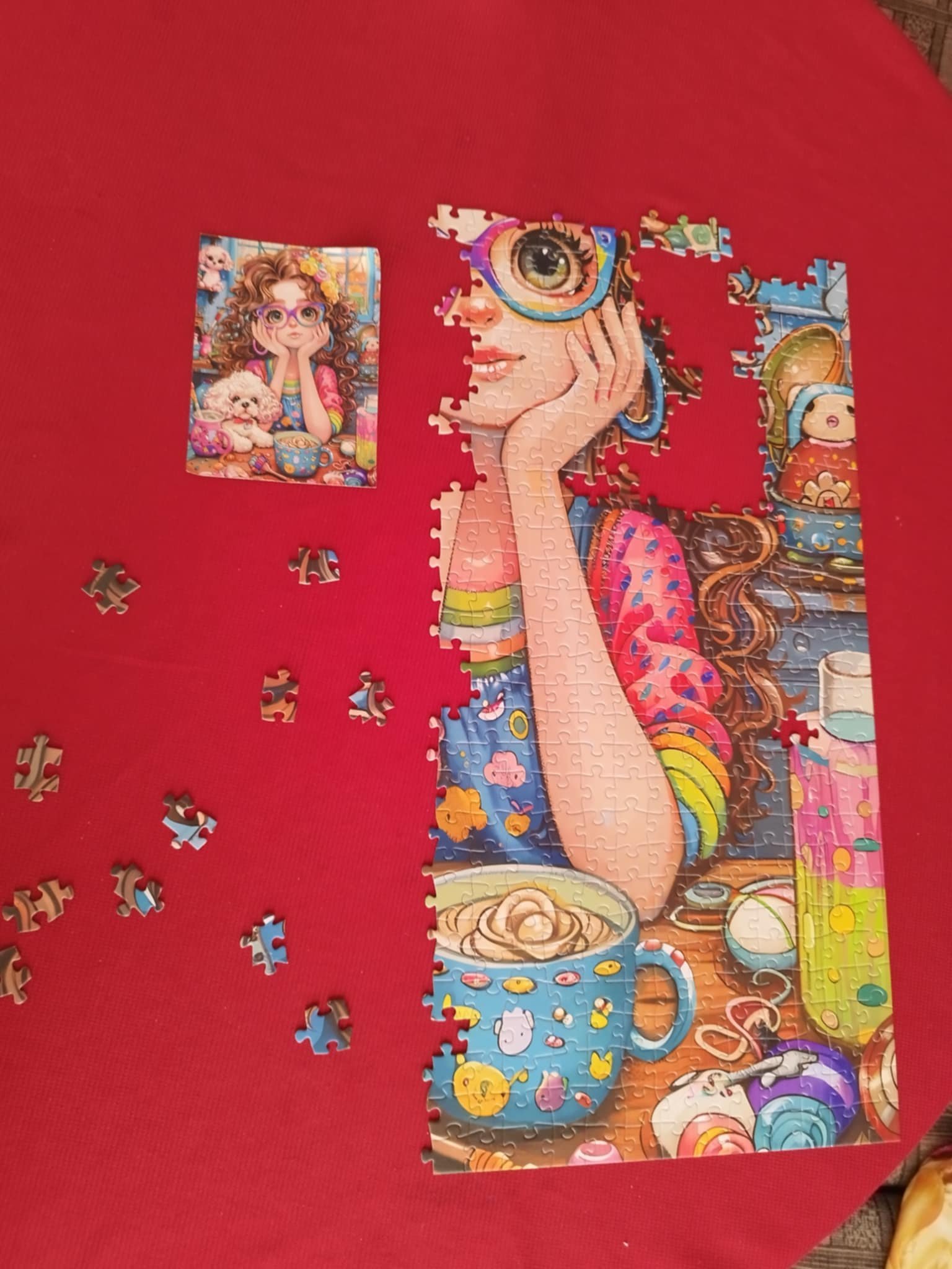 Аз най-накрая започнах пъзел и той пътуващ, на марката Tucocoo, явно са китайски, добро е качеството, картинката изглежда много лесна, а на мен ми е изключително труден, чак ме е срам да кажа, че го разделих по буквите на 8 части и пак въртя парчетата и се мъча. За този става въпрос:
