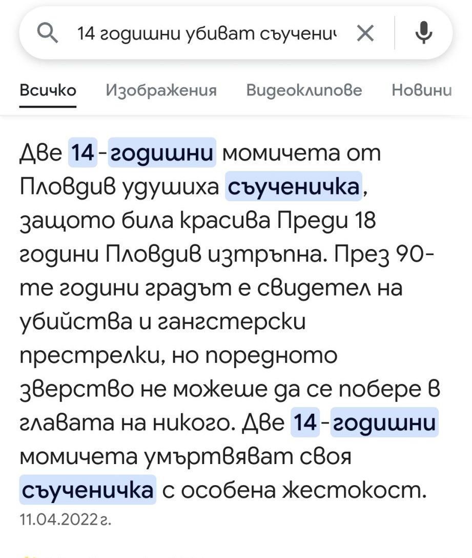 Даже в България имаше в новините за две момичета от Пловдив, които убиха тяхна приятелка...