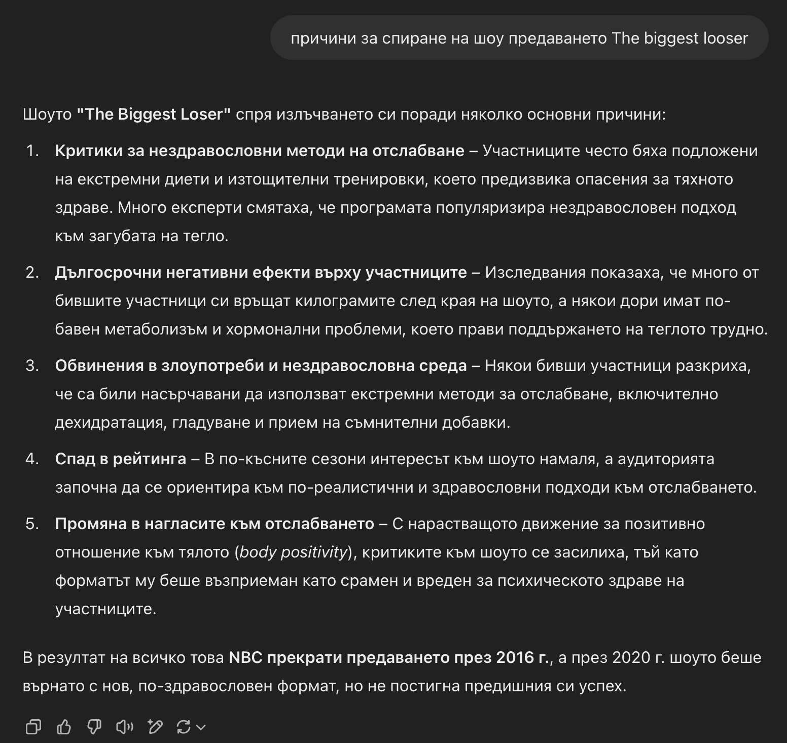 Много е спорно какво е провалено предаване в световен мащаб. Предаване с цели 17 сезона се счита за успешно. В другите държави и Биг Брадър е спряно и има много критика, а у нас процъфтява. Звезди станаха участниците тази година. Аз въобще не очаквах, мислех, че му мина модата. Ергенът също си върви, нищо, че не постига ефекта да има двойки накрая.