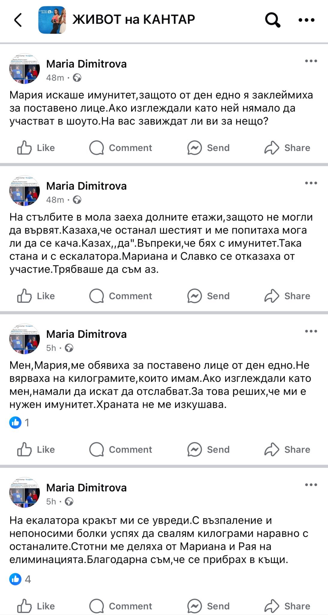 Мария е налазила страницата на предаването и пише за себе си в 3л, ед.ч 🙄