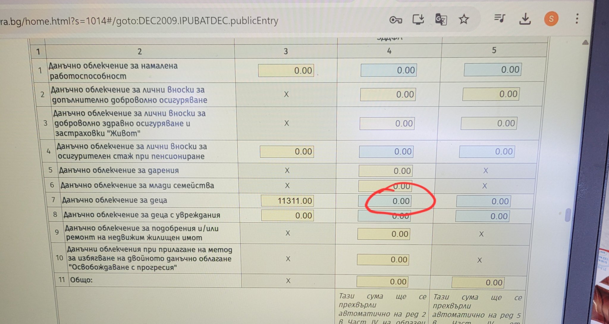 там, където си написала 689...в част VI на ред 4....ама си вписваш точно твоята данъчна основа и на ред 5 ще се получи остатъка от данъчното облекчение, на което има право таткото....то ще е нещо от сорта на 5 106 лв