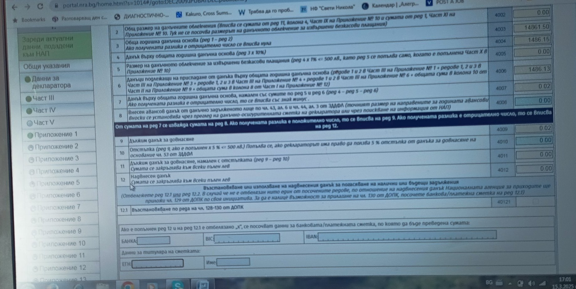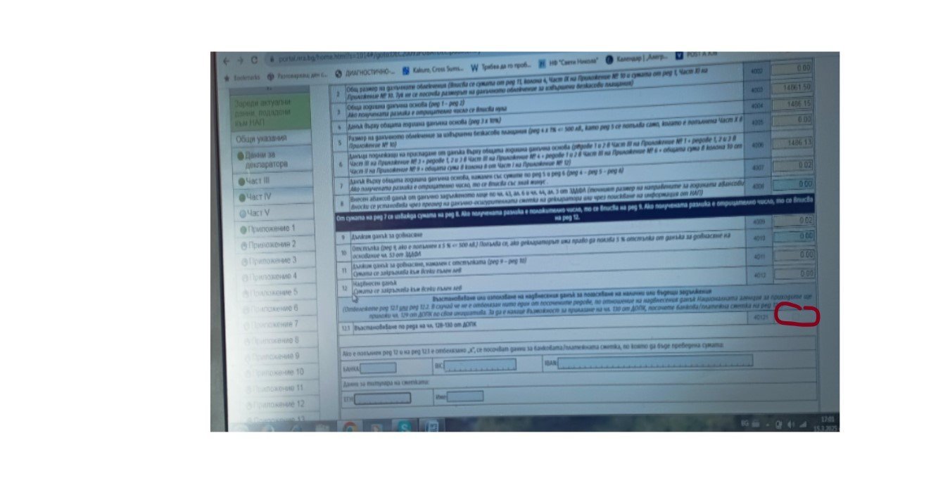 Боря се с декларацията. Навсякъде ми светна зелено и се изненадах колко бързо получих заветното зелено тази година. После се сетих,че никъде не съм попълвала банкова сметка. Видях, че в част ,IV има поле за банкова сметка, но не е активно за попълване. Трябва ли нещо друго да попълвам , за да се активира?