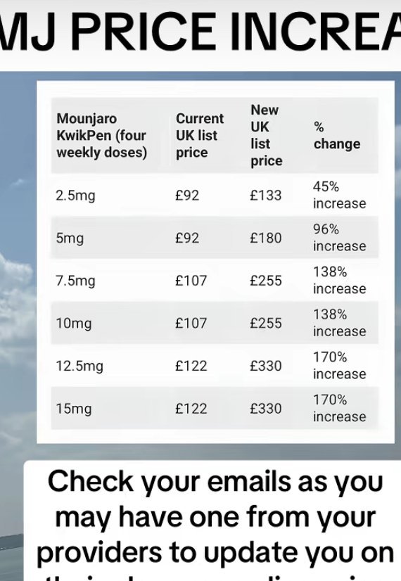 Това са горе долу актуални цени https://monj.co.uk/mounjaro-price-list-non-discounted-uk/, вижте, че няма под £130, има и над 200, което ме изненадва, чак пък такава разлика...