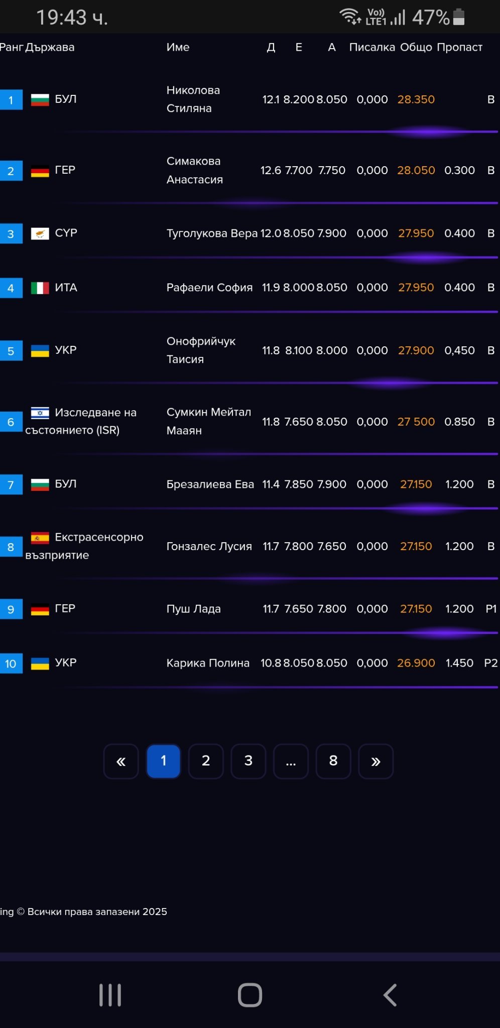 Поздравления на Стилияна! Днес беше истинско торнадо! Излезе 3 пъти през 15-20 минути и не оставе емоциите от титлите да я разконцентрират. Те само я мотивираха.