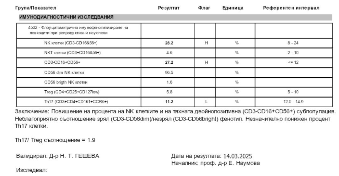 Аз пращам изследванията в МЦ Калчев, защото там ни беше прегледа, но дали мога по-бърз начин да се свързвам с доц. Михайлова някое приложение или Вайбър? Какво значо това съотношение Th17/Treg?
