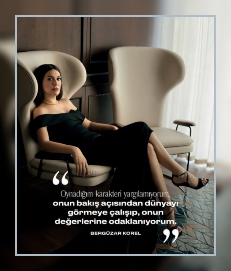 Първо звъня по видеовръзка на Бергюзар Корел. Тя е във фризьорския салон, за да се подготви за новата си героиня. Тя е много дружелюбна и отговаря на всички въпроси, въпреки цялата суматоха около нея. След това се срещаме за снимките. Въпреки че е на върха на кариерата ѝ, това не е повлияло на егото й. Може да има хора, които я намират за недостъпна/дистанцирана, но когато я опознаеш, виждаш, че няма нищо общо с нея, нейната усмивка и искреност стоплят сърцето ти. И е красива както винаги. Започваме разговора...