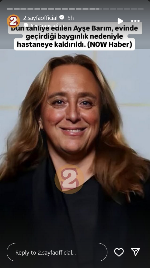"Айше Баръм, която беше освободена вчера, беше откарана в болница, след като припадна у дома."