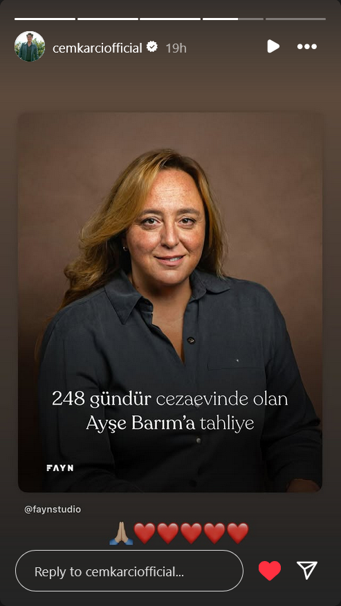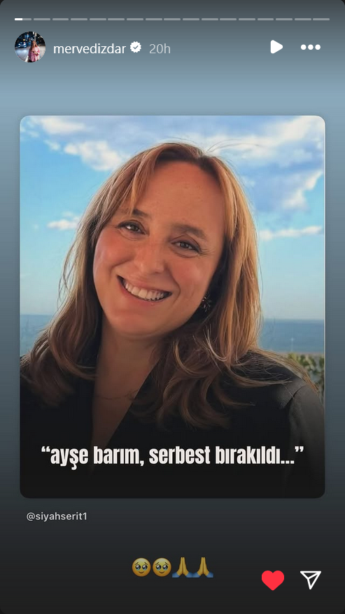 Бях истински щастлива да видя Айше Баръм освободена под домашен арест. Беше сърцераздирателно да видя как една толкова интелигентна, всестранно развита и трудолюбива жена, която е направила значителен принос за турската телевизионна индустрия, изградила огромна икономика от нулата с безброй усилия, губи здравето си ден след ден.