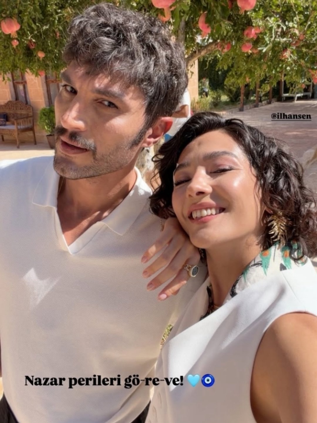 Айбюке и Илхан зад кадър на "Халеф". Тръгна нагоре рейтингът на сериала, турците харесват такова- женитби насила, кланове. Нека да върви, за Айбюке се радвам.